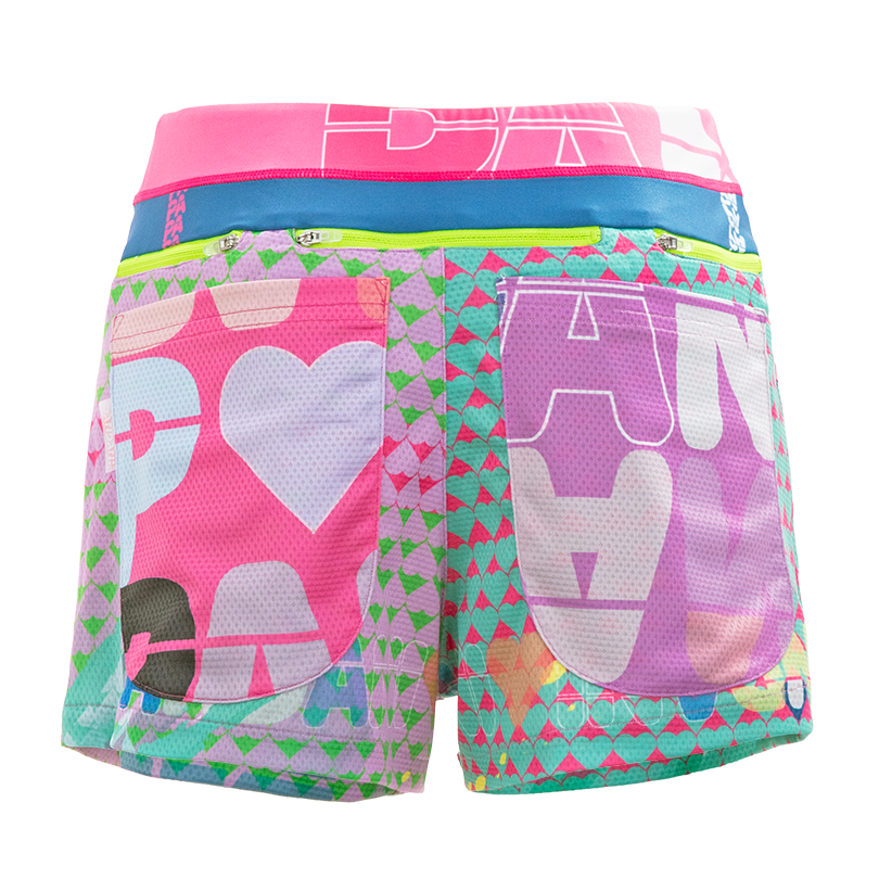 貴重品や鍵、カード類、エナジーバーなどの小さいアイテムは左右の小ぶりのファスナー付きポケットに、スマートフォンは安定感のある中央のファスナーポケットに収納できるので安心して持ち運ぶことができます。タオルや少し大きめの荷物はお尻の大きなポケットに入れてください。前ポケットは取り出し口が水平になっているので、走行中に左右どちらの手でも使用可能です!例えば、左手で右側のポケットの中のものを取り出せる仕様です。
